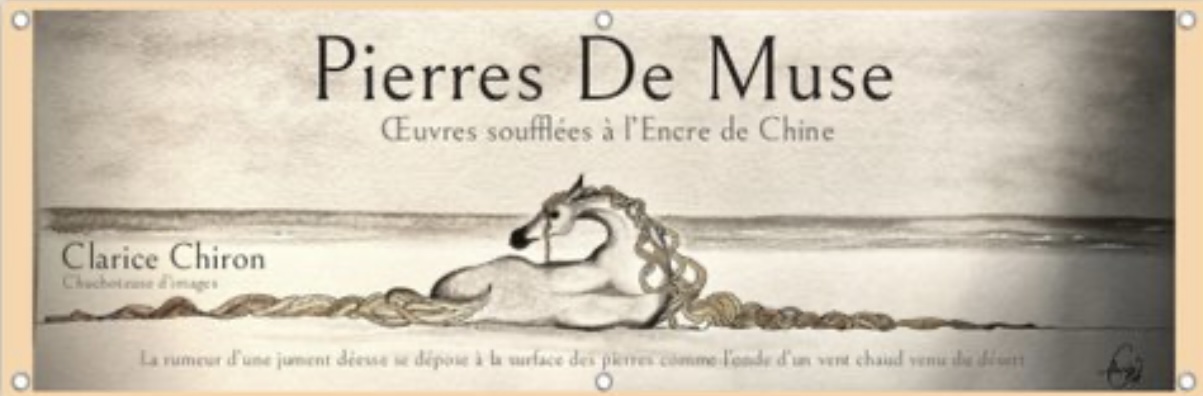 Encre de Chine appliquée à la plume sur supports minéraux (silex) et illustration.