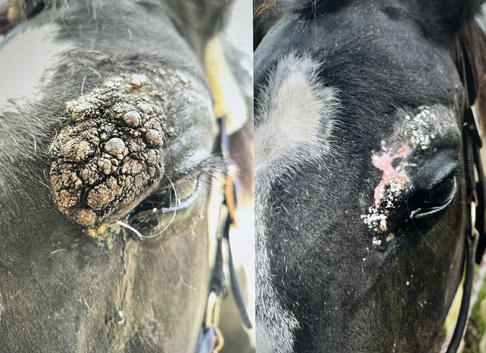 A gauche après 2 ans 1/2 de traitements, à droite, après 2 mois sous SERKYL